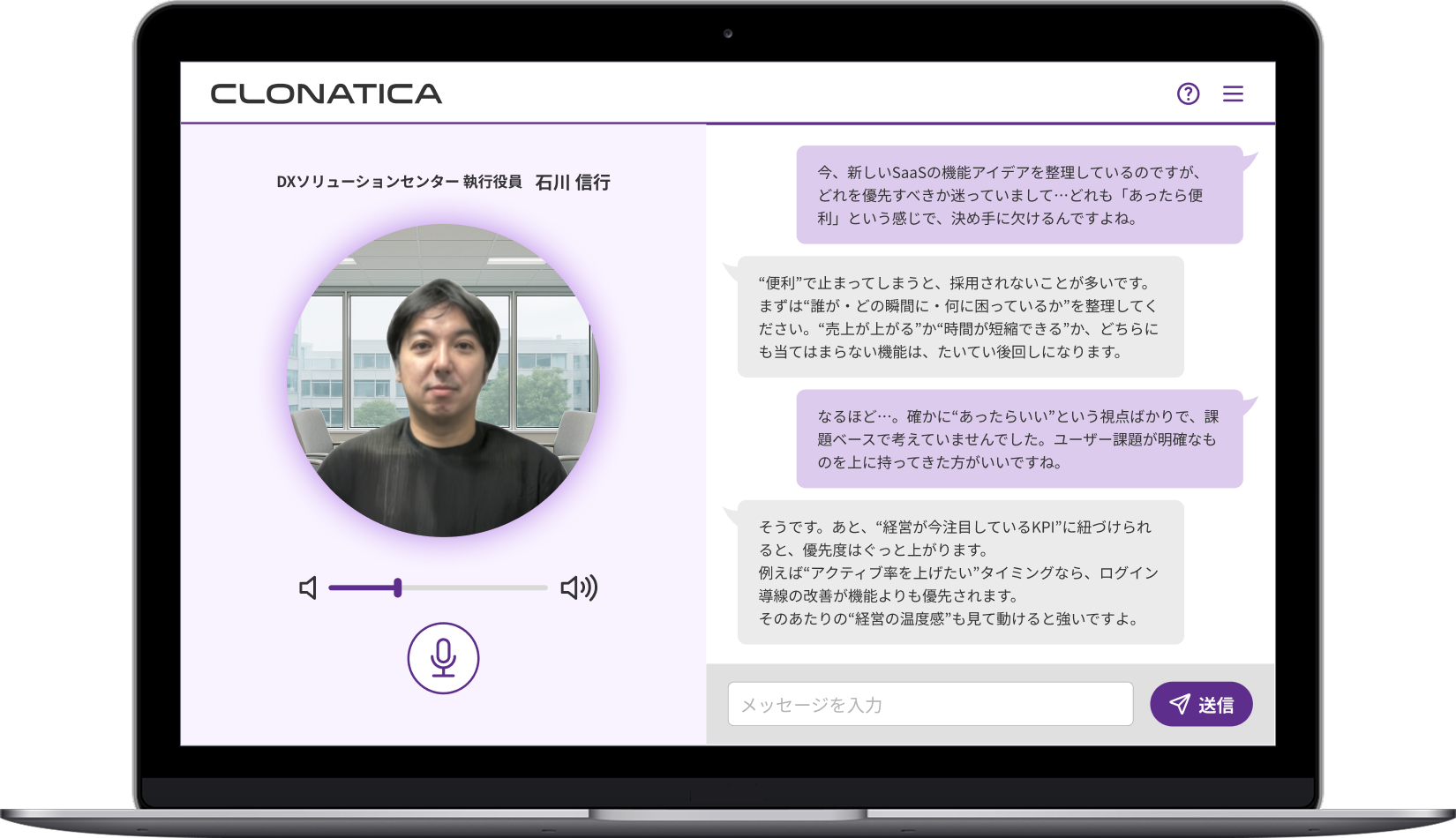 特定の人物の AI 化により、これまでにない業務効率化を実現します。